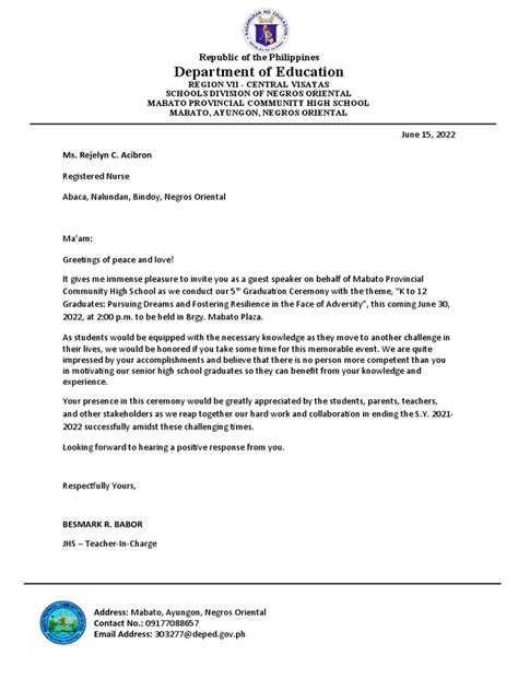 Download commencement speaker invitation letter Paperback